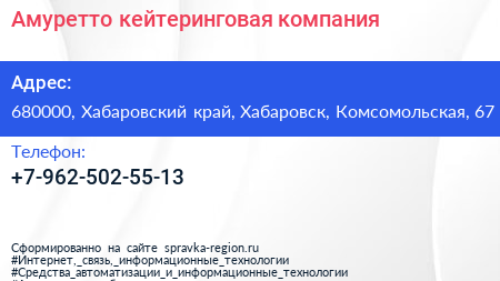 Амуретто, кейтеринговая компания по адресу 680000, Хабаровский край, Хабаровск, Комсомольская, 67 в дальнейшем Организация, размещена в следующих категориях: