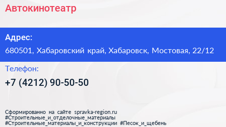 Автокинотеатр по адресу 680501, Хабаровский край, Хабаровск, Мостовая, 22/12 в дальнейшем Организация, размещена в следующих категориях: