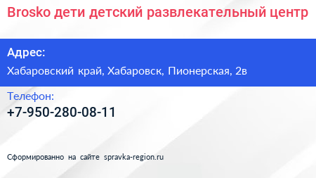 Brosko.дети, детский развлекательный центр по адресу Хабаровский край, Хабаровск, Пионерская, 2в в дальнейшем Организация, размещена в следующих категориях: