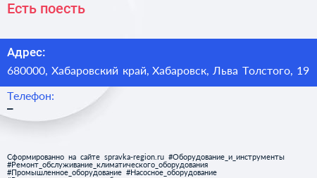 Есть поесть по адресу 680000, Хабаровский край, Хабаровск, Льва Толстого, 19 в дальнейшем Организация, размещена в следующих категориях: