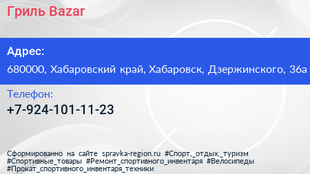 Гриль Bazar по адресу 680000, Хабаровский край, Хабаровск, Дзержинского, 36а в дальнейшем Организация, размещена в следующих категориях: