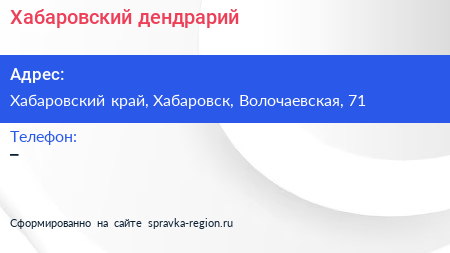 Хабаровский дендрарий по адресу Хабаровский край, Хабаровск, Волочаевская, 71 в дальнейшем Организация, размещена в следующих категориях: