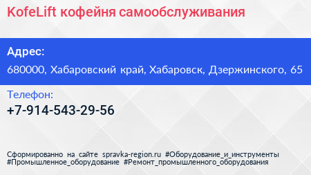 KofeLift, кофейня самообслуживания по адресу 680000, Хабаровский край, Хабаровск, Дзержинского, 65 в дальнейшем Организация, размещена в следующих категориях: