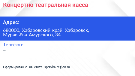Концертно-театральная касса по адресу 680000, Хабаровский край, Хабаровск, Муравьёва-Амурского, 34 в дальнейшем Организация, размещена в следующих категориях: