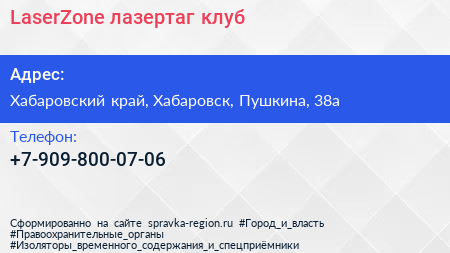 LaserZone, лазертаг-клуб по адресу Хабаровский край, Хабаровск, Пушкина, 38а в дальнейшем Организация, размещена в следующих категориях: