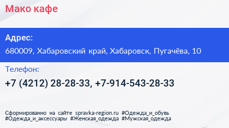 Мако, кафе по адресу 680009, Хабаровский край, Хабаровск, Пугачёва, 10 в дальнейшем Организация, размещена в следующих категориях: