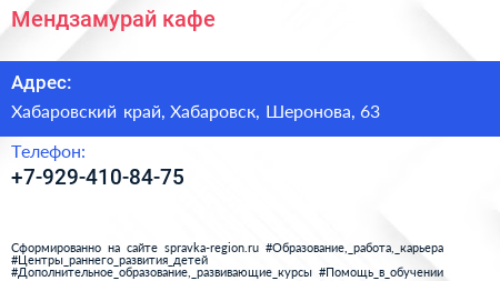 Мендзамурай, кафе по адресу Хабаровский край, Хабаровск, Шеронова, 63 в дальнейшем Организация, размещена в следующих категориях: