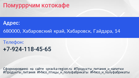 Помурррчим, котокафе по адресу 680000, Хабаровский край, Хабаровск, Гайдара, 14 в дальнейшем Организация, размещена в следующих категориях: