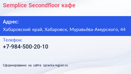 Semplice Secondfloor, кафе по адресу Хабаровский край, Хабаровск, Муравьёва-Амурского, 44 в дальнейшем Организация, размещена в следующих категориях: