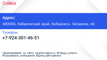 Сойка по адресу 680000, Хабаровский край, Хабаровск, Запарина, 66 в дальнейшем Организация, размещена в следующих категориях: