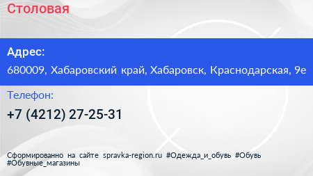 Столовая по адресу 680009, Хабаровский край, Хабаровск, Краснодарская, 9е в дальнейшем Организация, размещена в следующих категориях: