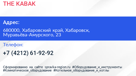 THE KABAK по адресу 680000, Хабаровский край, Хабаровск, Муравьёва-Амурского, 23 в дальнейшем Организация, размещена в следующих категориях: