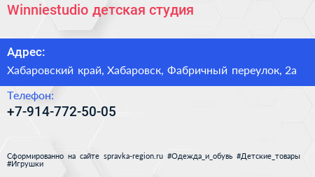 Winniestudio, детская студия по адресу Хабаровский край, Хабаровск, Фабричный переулок, 2а в дальнейшем Организация, размещена в следующих категориях: