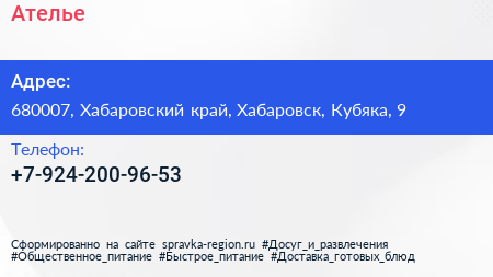 Ателье по адресу 680007, Хабаровский край, Хабаровск, Кубяка, 9 в дальнейшем Организация, размещена в следующих категориях: