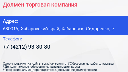 Долмен, торговая компания по адресу 680015, Хабаровский край, Хабаровск, Сидоренко, 7 в дальнейшем Организация, размещена в следующих категориях: