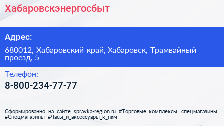 Хабаровскэнергосбыт по адресу 680012, Хабаровский край, Хабаровск, Трамвайный проезд, 5 в дальнейшем Организация, размещена в следующих категориях: