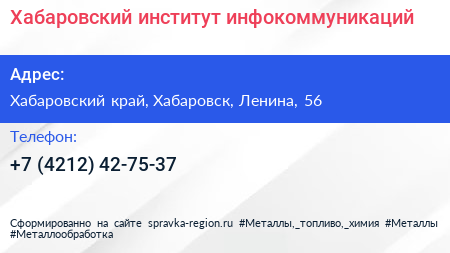 Хабаровский институт инфокоммуникаций по адресу Хабаровский край, Хабаровск, Ленина, 56 в дальнейшем Организация, размещена в следующих категориях: