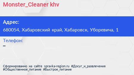 Monster_Cleaner.khv по адресу 680054, Хабаровский край, Хабаровск, Уборевича, 1 в дальнейшем Организация, размещена в следующих категориях: