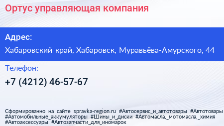 Ортус, управляющая компания по адресу Хабаровский край, Хабаровск, Муравьёва-Амурского, 44 в дальнейшем Организация, размещена в следующих категориях: