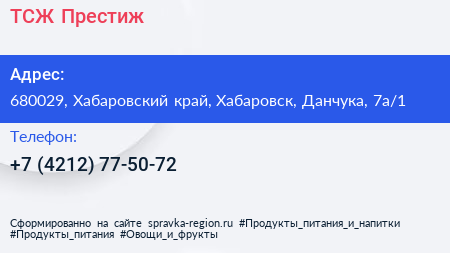 ТСЖ Престиж по адресу 680029, Хабаровский край, Хабаровск, Данчука, 7а/1 в дальнейшем Организация, размещена в следующих категориях: