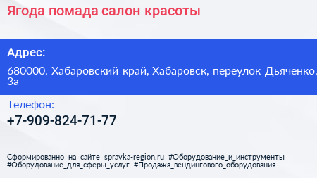 Ягода помада, салон красоты по адресу 680000, Хабаровский край, Хабаровск, переулок Дьяченко, 3а в дальнейшем Организация, размещена в следующих категориях: