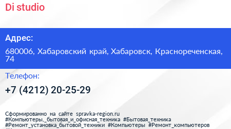 Di studio по адресу 680006, Хабаровский край, Хабаровск, Краснореченская, 74 в дальнейшем Организация, размещена в следующих категориях: