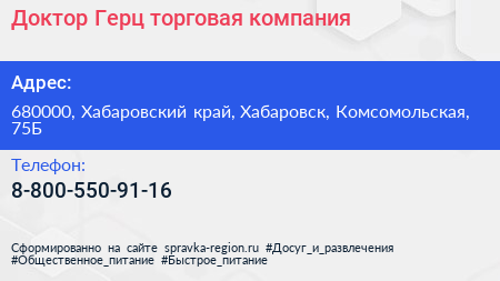 Доктор Герц, торговая компания по адресу 680000, Хабаровский край, Хабаровск, Комсомольская, 75Б в дальнейшем Организация, размещена в следующих категориях: