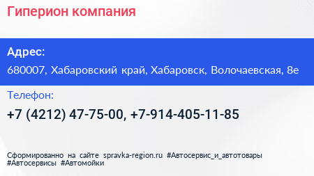 Гиперион, компания по адресу 680007, Хабаровский край, Хабаровск, Волочаевская, 8е в дальнейшем Организация, размещена в следующих категориях: