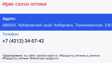 Ирис, салон оптики по адресу 680042, Хабаровский край, Хабаровск, Тихоокеанская, 130 в дальнейшем Организация, размещена в следующих категориях: