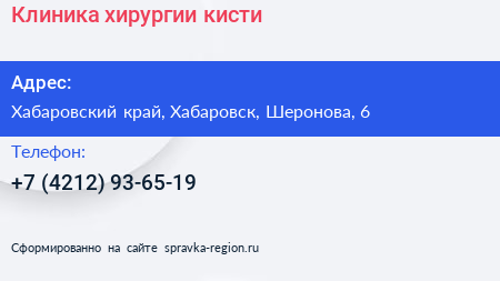 Клиника хирургии кисти по адресу Хабаровский край, Хабаровск, Шеронова, 6 в дальнейшем Организация, размещена в следующих категориях: