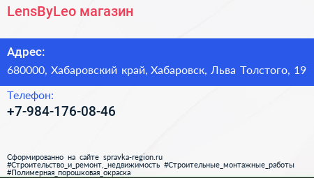 LensByLeo, магазин по адресу 680000, Хабаровский край, Хабаровск, Льва Толстого, 19 в дальнейшем Организация, размещена в следующих категориях: