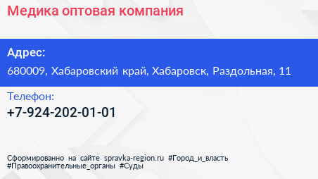 Медика, оптовая компания по адресу 680009, Хабаровский край, Хабаровск, Раздольная, 11 в дальнейшем Организация, размещена в следующих категориях: