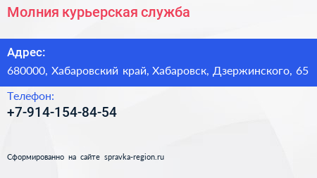 Молния, курьерская служба по адресу 680000, Хабаровский край, Хабаровск, Дзержинского, 65 в дальнейшем Организация, размещена в следующих категориях: