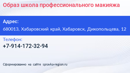 Образ, школа профессионального макияжа по адресу 680013, Хабаровский край, Хабаровск, Дикопольцева, 12 в дальнейшем Организация, размещена в следующих категориях: