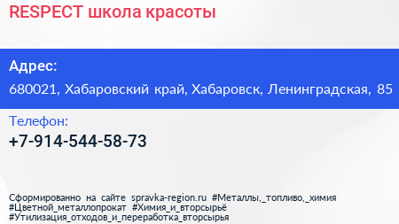 RESPECT, школа красоты по адресу 680021, Хабаровский край, Хабаровск, Ленинградская, 85 в дальнейшем Организация, размещена в следующих категориях: