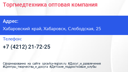 Торгмедтехника, оптовая компания по адресу Хабаровский край, Хабаровск, Слободская, 25 в дальнейшем Организация, размещена в следующих категориях: