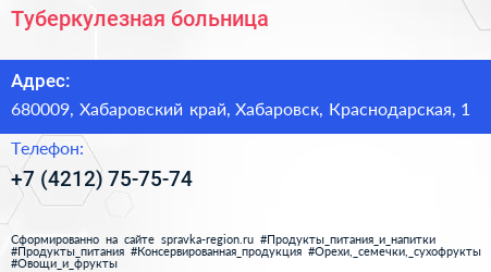 Туберкулезная больница по адресу 680009, Хабаровский край, Хабаровск, Краснодарская, 1 в дальнейшем Организация, размещена в следующих категориях: