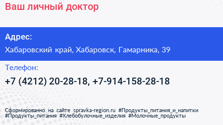 Ваш личный доктор по адресу Хабаровский край, Хабаровск, Гамарника, 39 в дальнейшем Организация, размещена в следующих категориях: