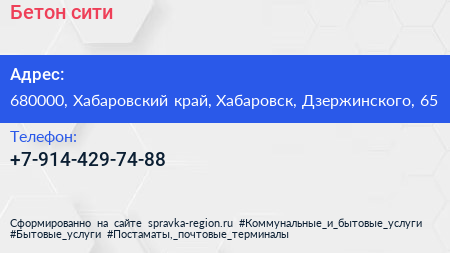 Бетон сити по адресу 680000, Хабаровский край, Хабаровск, Дзержинского, 65 в дальнейшем Организация, размещена в следующих категориях: