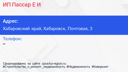ИП Пассар Е.И. по адресу Хабаровский край, Хабаровск, Почтовая, 3 в дальнейшем Организация, размещена в следующих категориях:
