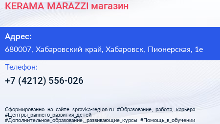 KERAMA MARAZZI, магазин по адресу 680007, Хабаровский край, Хабаровск, Пионерская, 1е в дальнейшем Организация, размещена в следующих категориях: