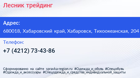 Лесник трейдинг по адресу 680018, Хабаровский край, Хабаровск, Тихоокеанская, 204 в дальнейшем Организация, размещена в следующих категориях: