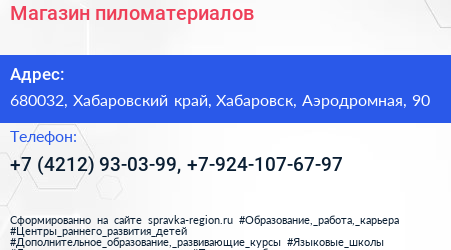 Магазин пиломатериалов по адресу 680032, Хабаровский край, Хабаровск, Аэродромная, 90 в дальнейшем Организация, размещена в следующих категориях: