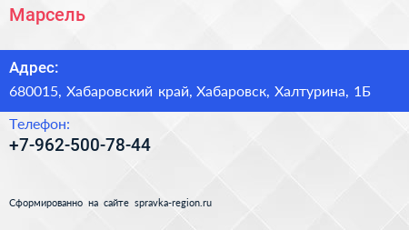 Марсель по адресу 680015, Хабаровский край, Хабаровск, Халтурина, 1Б в дальнейшем Организация, размещена в следующих категориях: