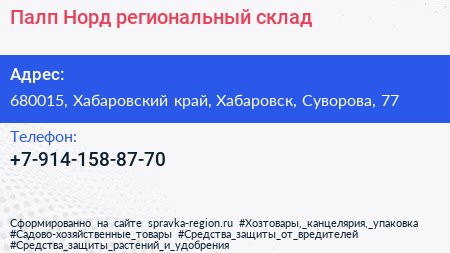 Палп-Норд, региональный склад по адресу 680015, Хабаровский край, Хабаровск, Суворова, 77 в дальнейшем Организация, размещена в следующих категориях: