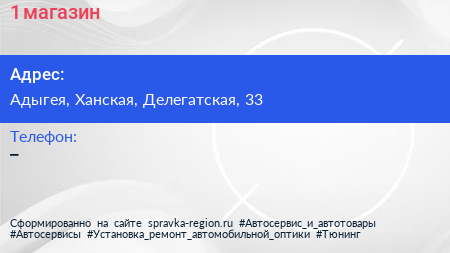 1, магазин по адресу Адыгея, Ханская, Делегатская, 33 в дальнейшем Организация, размещена в следующих категориях: