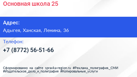 Основная школа №25 по адресу Адыгея, Ханская, Ленина, 36 в дальнейшем Организация, размещена в следующих категориях: