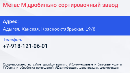Мегас-М, дробильно-сортировочный завод по адресу Адыгея, Ханская, Краснооктябрьская, 19/8 в дальнейшем Организация, размещена в следующих категориях: