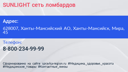 SUNLIGHT, сеть ломбардов по адресу 628007, Ханты-Мансийский АО, Ханты-Мансийск, Мира, 45 в дальнейшем Организация, размещена в следующих категориях: