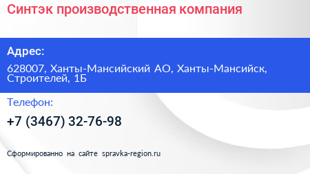 Синтэк, производственная компания в Ханты-Мансийске